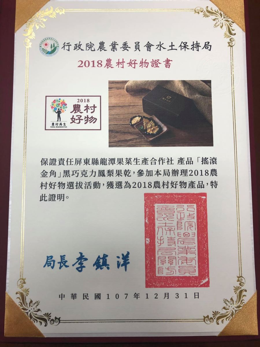 「搖滾金角」黑巧克力鳳梨果乾獲選2018年農村好物